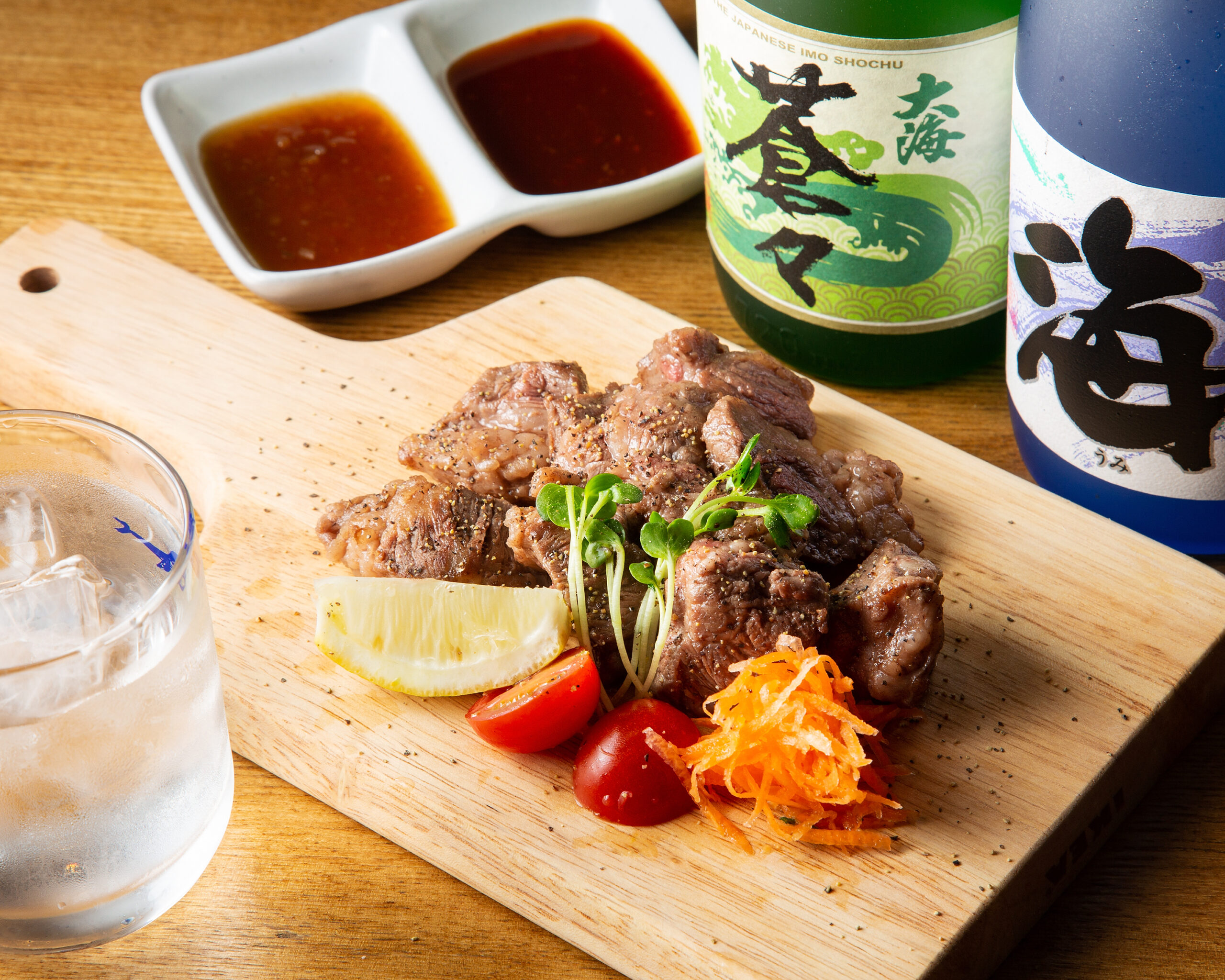 名物の「炙り牛茶漬け」や「肉盛り合わせ」は、香ばしさとジューシーさが絶妙なバランス。